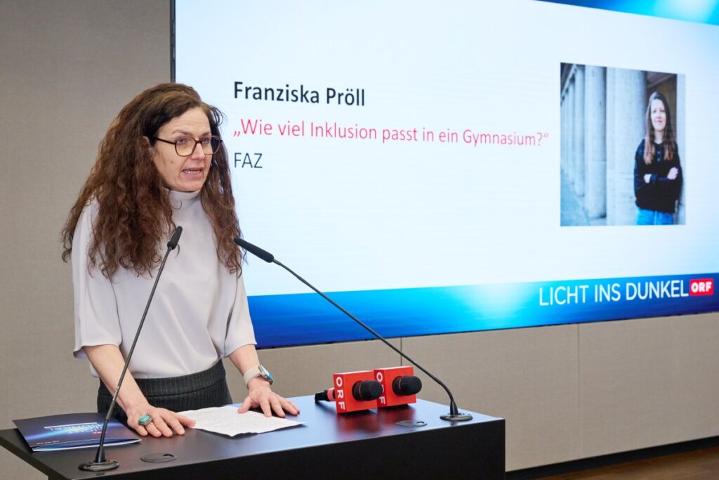 Die Jury vergab den Preis an Franziska Pröll für ihren Beitrag „Wie viel Inklusion passt in ein Gymnasium?“ (Frankfurter Allgemeine Zeitung).